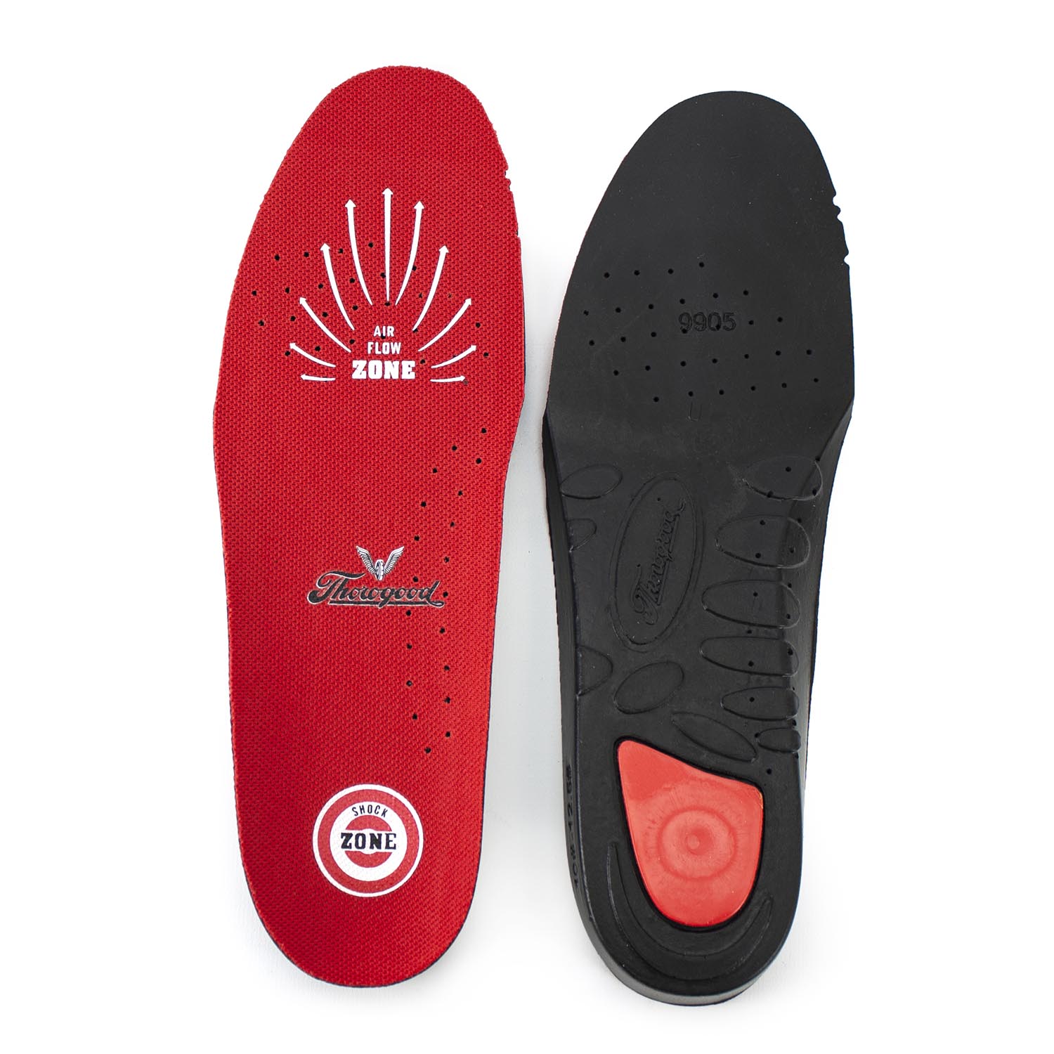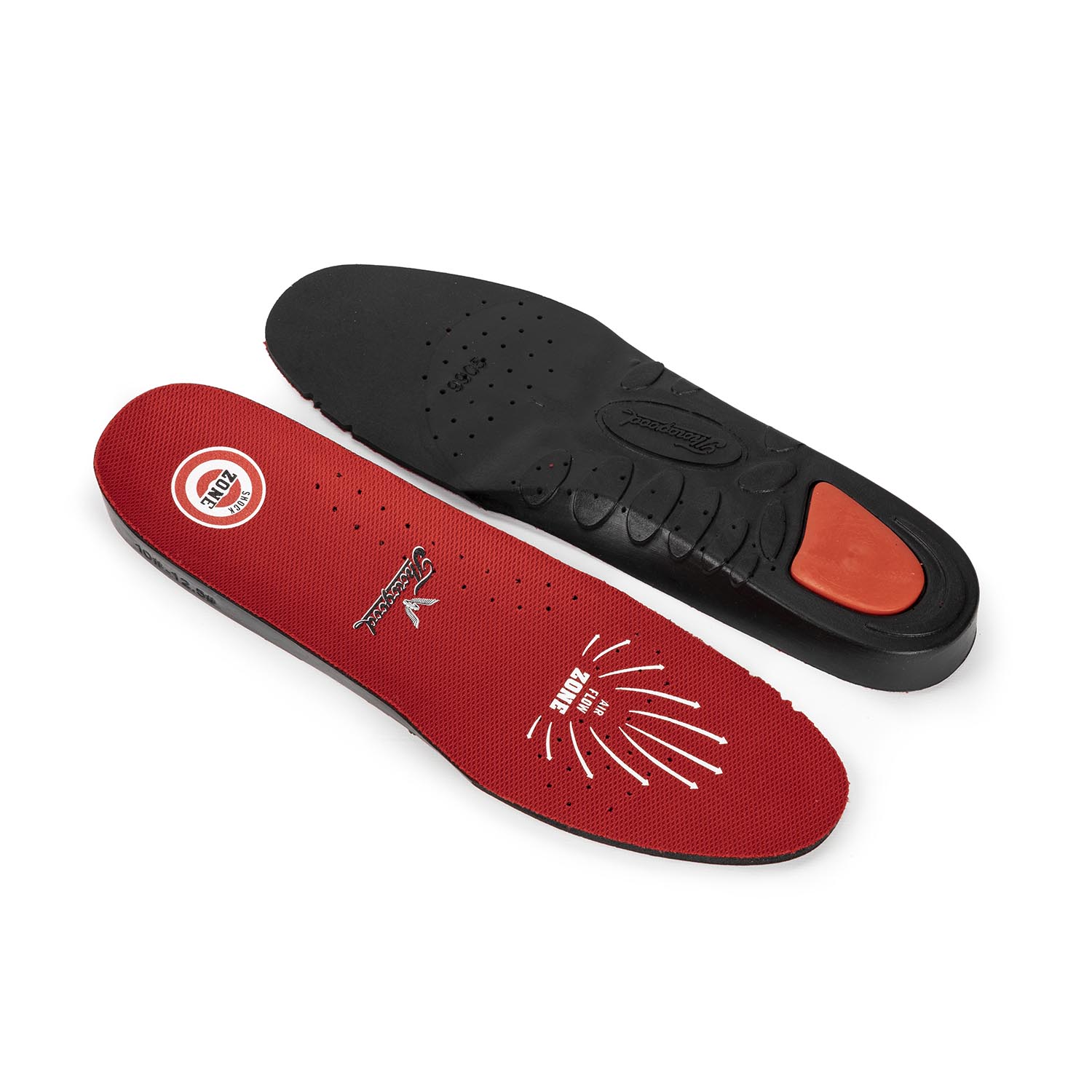 Experience comfort and airflow with Shock Zone Footbed's dual-density polyurethane construction featuring perforations in the ball and arch areas.